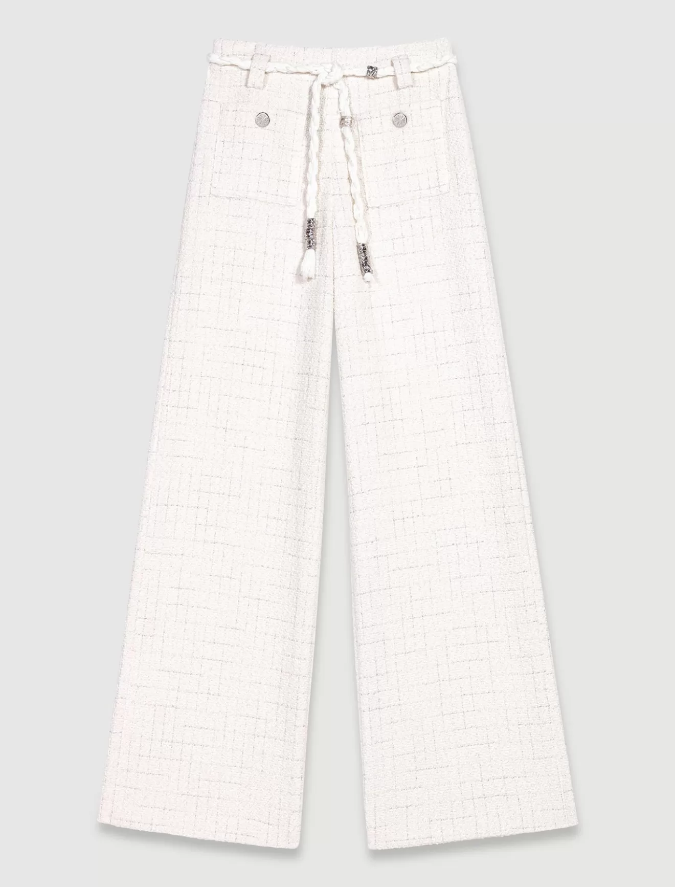 Muni d’une coupe droite, large et d’une taille haute, ce pantalon en tweed effet fantaisie apporte une touche d’éclat